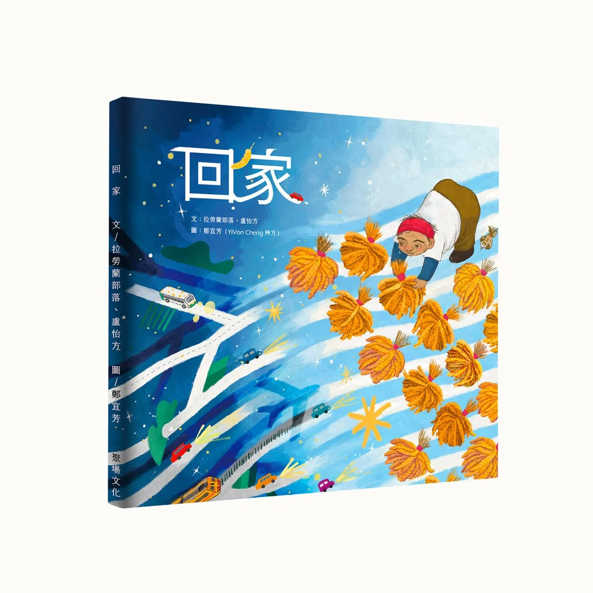 繪本《回家》以「小米」貫穿全篇故事,從長輩對遊子的招喚,述說部落生活的歲時與思念,在世代對話中,由青年的發聲促使真正回到自己的部落,一起向著大海展望對彼此守護的心意。